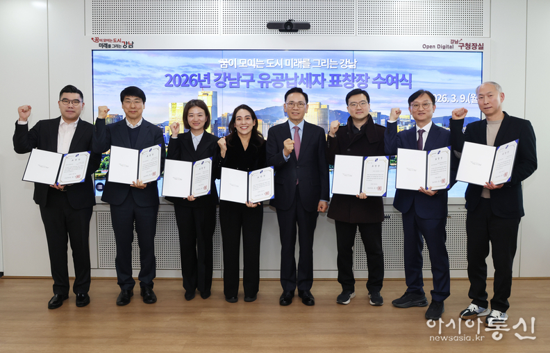 꿈이 모이는 도시, 미래를 그리는 강남구(구청장 조성명)가 9일 구청에서 ‘2026 유공납세자 표창장 수여식’을 개최하고, 성실납세로 지역사회에 기여한 유공납세자 10명에게 표창장을 수여했다. 올해 유공납세자는 개인 5명, 법인 5개사로, 이 가운데 가수 겸 배우로 활동 중인 권유리(소녀시대 유리) 씨도 포함됐다.