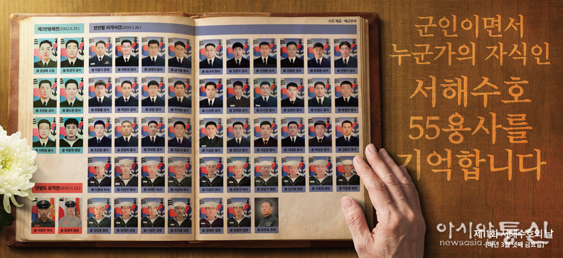 서해수호의 날은 3월 넷째 금요일로, '02년 제2연평해전, '10년 천안함 피격 사건, '10년 연평도 포격전에서 희생된 장병을 기리고 안보의식을 고양시키기 위해 제정되었으며, 이때 희생된 장병들이 서해수호 55용사이다. |