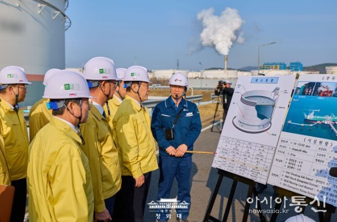 [아시아통신] 이재명 대통령은 오늘 오후 충남 서산시 대산읍에 위치한 한국석유공사 서산비축기지를 방문해 비축유 관리 상황을 점검하고 주요 석유화학기업들과 현장 간담회를 가졌다.