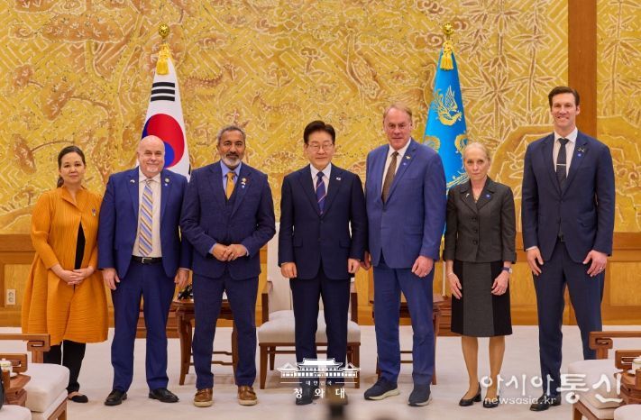 [아시아통신] 이재명 대통령은 3월 31일 오후 청와대에서 아미 베라(Ami Bera) 하원 동아태소위원회 간사 등 공화·민주 양당 의원으로 구성된 미국 의회 코리아스터디그룹 대표단을 접견하고 최근 중동 전쟁, 한미관계, 한반도 문제 등에 대해 의견을 나눴다.