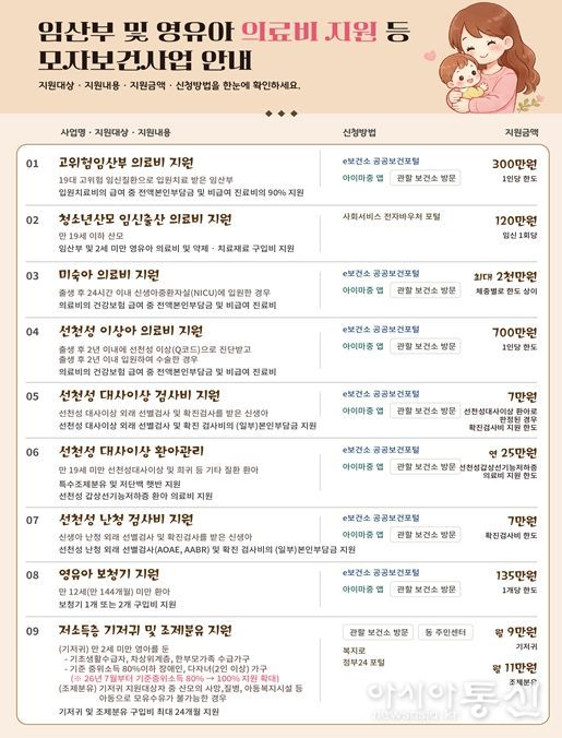 [아시아통신] 지난해 2만여명의 서울 내 영유아와 임산부를 지원한 ‘모자보건 사업’이 올해는 지원대상은 더 확대하고 지원액은 더 늘린다. 우선 미숙아에 대한 의료비 지원을 현재 1,000만원에서 최대 2,000만 원까지 늘리고, 난청 환아 보청기 지원 연령도 만 5세에서 만 12세까지 대폭 높이는 등 임신부터 출산·양육까지의 전과정을 한층 촘촘하게 관리한다는 계획이다.