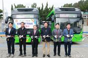 [아시아통신] 금산군은 10월 31일 금산읍 소재 한일교통 차고지에서 전기 저상버스 개통식을 개최했다. 이날 박범인 금산군수, 금산군의회 김기윤 의장, 송영천 금산군의원, 윤성수 한일교통 대표 이사, 앙면석·김기태 한일교통 운전자 노조 조합장 등이 참석한 가운데 전기저상버스차량 설명 및 후문 휠체어 탑승 슬라이드 시연, 테이프 커팅식 등이 진행됐다. 참석자들은 개통식 이후 한일교통 사무실에서 한일교통 현황 설명 등을 듣는 시간을 가졌다. 박범인 금산군수는 “군민의 안전한 이동을 위해 노력하시는 윤성수 대표님과 직원들께 감사드린다”며 “이번에 도입되는 전기저상버스를 통해 군민의 이동편의가 증진할 수 있도록 힘써주시기 바란다”고 말했다.