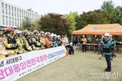 [아시아통신] 서대문구는 최근 이화여자대학교 산학협력관 일대에서 진행한 ‘2025 재난대응 안전한국훈련’을 성공리에 마무리했다고 3일 밝혔다. 이번 훈련은 ▲지진에 따른 건축물 붕괴와 화재 ▲전기·가스시설 파손 ▲도로 싱크홀 및 인근 산불 확산 등 복합 재난 상황을 가정해 이루어졌다. 단일 재난이 다른 재난으로 연쇄 확산하는 ‘복합 재난’의 특성을 반영해 현장 지휘·통제·복구 기능이 동시에 가동되는 통합형 훈련으로 추진했다. 서대문구청, 서대문소방서, 서대문경찰서, 이화여자대학교 등에서 300여 명이 참여한 가운데 각 기관은 재난 발생 시 상황판단 회의를 통한 신속한 의사결정과 유관기관 협조 체계를 점검했다. 이를 위해 통합지원본부 토론훈련과 실전형 현장훈련을 연계했다. 특히 이번 훈련에서는 소방 헬기와 로봇견(로봇개)을 활용한 입체적 화재 진압과 인명 수색 장면이 시연돼 실전 같은 긴장감을 더했다. 또한 서대문구청 ▲도로과의 ‘GPR(지반탐사 레이더) 차량을 통한 이화여대 일대 지반 공동 탐사’ ▲푸른도시과의 ‘안산(鞍山) 자락 잔불 진화’ ▲재난안전과의 ‘드론을 이용한 현장 실시간