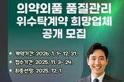 [아시아통신] 경기도보건환경연구원은 오는 24일까지 ‘2026년 의약외품 품질검사 위·수탁계약’ 참여를 희망하는 제조·수입업체를 모집한다. ‘의약품 등 제조업 및 수입자의 시설기준령’에 따르면 의약외품은 품질검사를 위한 시설을 갖추고 자체 품질관리를 하거나 식약처 지정 시험검사기관과의 품질관리 위수탁 계약을 통해 품질을 관리해야 한다. 연구원은 2008년부터 매년 품질관리 위수탁 계약을 통해 품질검사 시설을 갖추지 못한 도내 소규모 의약외품 업체의 품질검사를 수행하고 있다. 지원 대상은 도내 사업을 등록한 의약외품 제조 및 수입업체이며, 품질관리 지원 분야는 보건용 마스크와 생리대 등 도민의 생활과 밀접한 의약외품이다. 제출 서류와 양식 등 모집 관련 자세한 사항은 경기도와 경기도보건환경연구원 누리집을 통해 확인할 수 있으며, 작성된 자료는 전자우편으로 접수할 수 있다. 연구원은 24일까지 희망업체를 모집하고 경기북부 소재, 신규 및 소규모 의약외품 업체를 우선으로 선정해 12월 1일 발표할 계획이다.