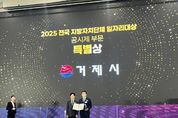 [아시아통신] 거제시는 지난 9월 30일 청주 오스코컨벤션센터에서 열린 ‘2025 전국지방치단체 일자리대상’ 시상식에서 일자리 공시제 부문 특별상(장관상)을 수상했다고 밝혔다. 2025년 일자리대상은 고용노동부가 전국 지방자치단체를 대상으로 지난해 일자리 목표와 추진 실적을 종합적으로 평가해 우수한 자치단체를 선정 시상하는 행사이다. 거제시는 지난 몇 년간 지역 산업 특성에 맞춘 맞춤형 일자리 정책을 지속적으로 추진하며 청년·여성·중장년층 등 다양한 계층의 고용확대에 기여한 점을 높이 평가받았다. 또한, 주력산업인 조선업 기업과 협력 네트워크를 통해 고용 및 노동자 지원 등의 사업을 운영하고 일자리 질 개선에도 힘써왔다. 옥치덕 경제해양국장은 이날 수상식에 참석해 “앞으로도 우리 거제시는 일자리 정책을 단순한 취업지원 차원을 넘어, 지역사회 전반의 지속가능한 성장전략과 연계하여 시민들이 정주하고 일자리가 보금자리가 되는 양질의 일자리 정책을 펼쳐나가겠다”고 밝혔다.