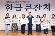 [아시아통신] 한글의 아름다움이 전북에서 다시 피어났다. 전북특별자치도는 훈민정음 반포 579돌을 맞아 훈민정음 반포를 기념하고 한글의 우수성과 가치를 되새기고자 '2025 도민과 함께하는 한글큰잔치'를 성황리에 개최했다. 이번 행사에는 김관영 전북특별자치도지사, 한명규 JTV 사장, 박기범 전주대 국어문화원장과 많은 도민들이 함께했으며, 한국소리문화의전당에서 진행 중인‘세계서예전북비엔날레’와 연계해 한글의 문화적 가치를 한층 확산시켰다. 행사장에는 성인문해학습자 편지쓰기와 문해교육사 체험수기 공모전 우수작이 전시돼 한글 학습의 소중함을 전했고, 부대행사로 한글서예 소망쓰기 체험과 한글서예 유네스코 인류무형문화유산 등재 기원 퍼포먼스가 진행돼 관람객들의 큰 호응을 얻었다. 기념행사는 ▲한글 유공자 표창, ▲한글큰잔치 공모전 시상, ▲한글 우수성 짧은영상(Shorts) 시청, ▲도립국악원 어린이교향악단의 ‘한글날 노래’ 연주 등으로 구성돼 풍성한 볼거리를 제공했다. 특히 공모전 우수작으로 선정된 ‘한글사랑 노래’와 짧은영상은 향후 한글사랑 분위기 확산에 적극 활용될 예정이다. 기념식 후에는 김정배 교