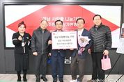 [아시아통신] 하남시는 24일 관내 백조현대B상가번영회에서 ‘하남 사랑愛나눔’성금으로 70만원을 기탁받았다고 밝혔다. 이날 기탁식에는 이현재 하남시장을 비롯하여 이성근 회장, 이강용 감사, 이문섭 총무가 참석했다. 백조현대B상가번영회는 지역사회 나눔 문화 확산과 취약계층 지원을 위해 2018년부터 지난 8년 동안 꾸준히 성금을 기부해왔다. 번영회는 올해에도 관내 어려운 이웃을 돕기 위한 성금을 전달하며 지역사회에 따뜻한 메시지를 전했다. 번영회 이성근 회장은 “성금은 45개 상가 회원들이 한마음으로 모은 정성이며, 따뜻한 마음이 관내 어려운 이웃들에게 잘 전달되길 바란다”고 기탁 소감을 밝혔다. 이현재 하남시장은 “오랜 기간 변함없이 지역사회 발전과 이웃돌봄에 앞장서는 백조현대B상가번영회에 깊은 감사를 전한다”며 “기탁된 성금은 도움이 꼭 필요한 이웃에게 신속하게 전달하겠다”고 말했다. 이날 기탁한 성금은 관내 복지사각지대에 놓인 취약계층 가구에 배분될 예정이다.
