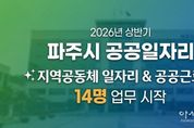 [아시아통신] 파주시가 올해 상반기 지역공동체 일자리사업을 3일부터 시작했다. 최종 선발된 사업 참여자들은 이날 각자 배정된 일터로 첫 출근했다. 지역공동체 일자리사업은 실직 상태이거나 정기소득이 없는 18세 이상 파주시민을 대상으로 하며, 지역 자원을 활용하거나 현안을 반영한 일자리를 발굴해 지역공동체 형성에 보탬을 주기 위한 일자리 사업이다. 시는 이번 지역공동체 일자리사업으로 ▲청년 일자리사업 ▲주말농장 환경 정비 ▲촘촘보조교사 등 3개 사업을 추진하여 11명을 선발했으며, 시급한 현안에 대응하기 위해 추가로 선발한 공공근로사업 참여자 3명까지 총 14명을 선발했다. 이번 참여자들은 이달 3일부터 6월 24일까지 약 4개월간 근무하게 된다. 이이구 민생경제과장은 “공공근로사업이 단순한 재정 지원 일자리를 넘어 안정적인 일자리를 찾아가기 위한 마중물이 될 수 있도록 노력해 나가겠다”라고 말했다. 한편 시는 이달 중순경 '2026년도 2단계 공공근로사업’참여자를 모집할 예정이며, 자세한 사항은 파주시청 누리집을 참고하면 된다.