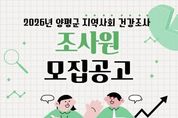 [아시아통신] 양평군은 질병관리청 및 양평군보건소와 공동으로 추진하는 ‘2026년 지역사회 건강조사’에 참여할 조사원 6명을 모집한다고 밝혔다. 지역사회 건강조사는 지역 주민의 건강 수준과 생활 습관, 만성질환 현황 등을 파악해 지역 특성에 맞는 보건 정책 수립의 기초 자료로 활용하기 위해 매년 실시되는 국가승인통계다. 이번 조사는 5월 16일부터 7월 31일까지 약 2개월 반 동안 진행되며, 조사 진행 상황에 따라 종료일은 변경될 수 있다. 모집 분야는 ‘2026년 지역사회 건강조사 조사원’으로, 근무 지역은 양평군 관내이며 모집 인원은 총 6명이다. 선발된 조사원은 조사 수행에 앞서 표본지점 확인을 위한 사전 조사를 실시하고, 조사 대상 가구로 선정된 표본가구를 직접 방문해 19세 이상 성인을 대상으로 스마트 기기(태블릿 PC)를 활용한 1대1 면접 조사를 수행하게 된다. 전형은 1차 서류 전형과 2차 면접 전형으로 진행된다. 군은 서류 전형에서 응시자의 자격 및 경력의 적합 여부를 심사하며, 1차 합격자를 대상으로 면접 전형을 실시한다. 원서 접수 기간은 3월 5일부터 13일까지이며, 본인이
