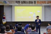 [아시아통신] 대전 대덕구는 21일 구청 청렴관에서 공직자의 응급 상황 대응 역량 강화를 위한 심폐소생술(CPR) 및 응급처치 교육을 실시했다고 밝혔다. 최근 일상 공간에서 심정지·기도 폐쇄 등 돌발 상황이 늘며 골든타임 확보의 중요성이 커짐에 따라, 공직자가 응급 상황에서 주민의 생명과 안전을 지킬 초기 대응 능력을 갖추도록 하기 위한 조치다. 교육은 그간 심폐소생술 과정을 이수하지 못한 직원과 신규 임용 공무원 등 60여 명을 대상으로 진행됐으며, 대덕소방서 소방관이 강사로 참여해 실습 위주로 운영됐다. 참여 직원들은 마네킹과 자동심장충격기(AED) 훈련기를 활용해 △정확한 흉부 압박 및 인공호흡 △AED 사용 요령 △기도 폐쇄 대처법 △상황별 응급 구조 절차 등을 반복 훈련했다. 구 관계자는 “실습 중심의 체험형 교육을 통해 초기 대응의 정확도와 자신감을 끌어올렸다”고 설명했다. 최충규 대덕구청장은 “예상치 못한 위기에서 초기 대응의 몇 분이 생사를 가른다”며 “직원 역량을 지속적으로 강화해 구민이 안심하는 행정 환경을 만들고, 구민 안전망을 더욱 촘촘히 하겠다”고 말했다.