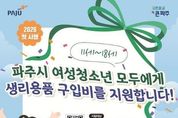 [아시아통신] 파주시는 여성청소년의 건강과 복지 향상을 위해 2026년 3월부터 11~18세 파주시 여성청소년 모두를 대상으로 생리용품 지원금을 지급한다. 지원 대상자는 파주시에 주민등록, 외국인등록, 국내거소 신고가 되어있는 11~18세의 여성청소년으로 월 14,000원씩 연 최대 168,000원의 생리용품 구입비를 모바일 지역화폐로 지급하며, 해당 지역화폐는 생리용품 구매 전용으로 사용이 제한된다. 온라인의 경우 3월 5일 14시부터 경기민원24에서 신청이 가능하며, 방문 신청은 3월 4일부터 주민등록상 주소지 행정복지센터에서 접수한다. 지원금은 신청 이후 자격 조건 검증을 통해 4월 20일부터 순차적으로 지급되며, 신청 자격 확인을 위해 최소 2주 이상의 검토 기간이 소요될 것으로 예상된다. 지원금은 파주시 지역화폐 가맹점으로 등록된 4개 편의점(지에스(GS)25, 시유(CU), 이마트24, 세븐일레븐)과 배달특급 앱의 생리용품 전용몰(온라인)에서 사용할 수 있으며 해당 사용처에서 지원금 사용을 위해서는 경기지역화폐 앱 설치 및 가입이 필수인 점에 유의가 필요하다. 김지숙 청년청소년과장은 “청