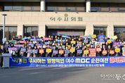 [아시아통신] 여수MBC 순천이전을 저지하기 위한 여수시민들의 외침이 도심 한가운데 울려 퍼졌다. 15일 여수시에 따르면, 이날 오후 3시 여수시와 여수시의회, 시민사회단체로 구성된 ‘여수MBC 순천이전 반대 범시민대책위원회’는 시의회 청사 1층 공감뜨락에서 ‘여수MBC 지키기! 대시민 토론회 및 결의대회’를 가졌다. 이날 대회는 범대위 공동위원장인 여수시장과 시의장, 범대위 회원을 비롯해 시민과 시의원 등 3백여 명이 참석한 가운데, 1부 대시민토론회와 2부 결의대회 순으로 진행됐다. 이들은 결의문에서 “시민 의견을 배제하고 공론화 과정 없이 일방적으로 추진한 여수MBC 순천이전을 즉각 중단하라”며, “이전 계획을 철회하고 공영방송의 책무를 다하라”고 촉구했다. 정기명 시장도 “여수MBC는 지금이라도 시민들께 사죄하고 대화에 나서라”며, “대화를 통해 시민적 합의만 이뤄진다면 시는 어떠한 제안도 수용할 준비가 되어있는 만큼 이 위기를 함께 헤쳐 나가자”고 밝혔다. 한편, 참석자들은 행사를 통해 결의를 다지고, 여수시의회를 출발해 KB국민은행과 (구)송원백화점, 해양경찰서, 여수MBC