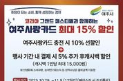 [아시아통신] 여주시는 ‘2025 코리아 그랜드 페스티벌’ 기간인 오는 10월 29일부터 11월 9일까지 ‘여주사랑카드 최대 15% 할인’ 행사를 한다고 밝혔다. 여주사랑카드 사용자는 충전 시 10% 선할인(인센티브 충전)을 받을 수 있으며, 행사기간 내 결제 시 추가로 5% 후캐시백 지원을 받을 수 있다. 5% 캐시백 행사는 예산 소진시까지 1인 최대15,000원까지 혜택을 받을 수 있도록 지원하며, 지원 내역은 모바일 경기지역화폐 앱에서 실시간으로 확인할 수 있다고 안내했다. (5% 캐시백 행사에 민생회복 소비쿠폰, 농어민기회소득 등 정책수당은 결제 금액에 포함되지 않는다.) 코리아 그랜드 페스티벌은 내수 활성화를 위해 중소벤처기업부, 산업통상자원부 등 정부가 주관하는 소비 축제로 10개 부처와 3만개 유통사가 참여하며, 지역사랑상품권과 디지털온누리상품권 추가 할인, 상생소비복권, 카드사 캐시백 이벤트 등을 진행한다. 여주시 일자리경제과 관계자는 “이번 행사를 통해 지역 내 소비 진작, 지역 소상공인들의 매출 증대에 도움이 되기를 바란다”라며, “시민분들의 많은 관심과 참여를 바란다”고 말했다.