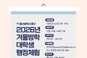 [아시아통신] 울산 중구가 12월 10일부터 12월 17일까지 ‘2026년 겨울방학 대학생 행정체험’ 참여자 15명을 모집한다. 모집 대상은 본인 또는 부모 가운데 한 명 이상이 중구에 주소를 두고 있는 상태에서 대학교에 재학 중이거나 복학 신청을 한 18세 이상 대학생이다. 참여를 희망하는 경우 중구청 일자리정책과를 직접 방문하거나 전자우편을 통해 신청서를 제출하면 된다. 중구는 국민기초생활보장수급자·차상위가구·한부모가정 학생 등을 전체 모집 인원의 20% 범위 내에서 우선 선발하고, 나머지 인원은 무작위 공개 추첨으로 선발할 예정이다. 선발 결과는 오는 12월 30일 중구청 누리집에 게시된다. 대학생 행정체험 참여자는 내년 1월 9일부터 2월 5일까지 평일 오전 9시부터 오후 6시까지 점심시간을 제외하고 하루 8시간 동안 구청과 동(洞) 행정복지센터, 지역아동센터 등에서 민원 안내, 자료 정리 업무 등을 하게 된다. 자세한 사항은 중구청 누리집에서 확인할 수 있다. 중구 관계자는 “이번 행정체험 프로그램이 행정의 역할을 이해하고 나아가 진로를 모색하는 기회가