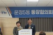 [아시아통신] 파주시 운정5동 통장협의회는 지난 11일 운정5동 행정복지센터를 방문해 이웃 돕기 성금 200만 원을 기탁하며 따뜻한 연말 나눔을 이어갔다고 전했다. 운정5동 통장협의회는 올해 5월, 영남 지역 산불 피해 복구 지원을 위해 성금을 전달한 데 이어, 연말에도 지역 취약계층을 위한 성금을 마련하며 지속적으로 나눔 활동을 실천하고 있다. 이번 기탁 성금은 겨울철 한파와 생활고로 어려움을 겪는 가구에게 실질적인 도움이 될 수 있도록 복지사업에 활용될 예정이다. 반은주 운정5동 통장협의회장은 “회원들이 함께 뜻을 모아 마련한 성금이 어려운 이웃에게 작은 힘이 되길 바란다”라고 말했다. 이창훈 운정5동장은 “통장협의회의 꾸준한 나눔 실천이 지역사회를 더욱 따뜻하게 만들고 있다”라며 “기탁된 성금은 겨울철 어려움을 겪는 가구에 온기를 전하는 데 도움이 되도록 하겠다”라고 전했다.