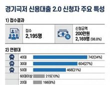 [아시아통신] 경기도가 금융취약계층의 마지막 안전망 역할로 추진한 ‘경기 극저신용대출 2.0’ 1차 신청자 29%가 고금리·불법사금융 이용 경험이 있는 것으로 조사됐다. 경기도는 지난 2월 11일 마감한 ‘경기 극저신용대출 2.0’ 신청자 2,195명을 분석한 결과 신청자의 74%(1,627명)가 대출 용도를 ‘생활비’라고 밝히는 등 금융취약계층의 생계유지와 채무 부담 해소를 위해 금융 지원이 절실한 것으로 나타났다고 20일 밝혔다. 생활비 마련 외에 두 번째 많은 신청 목적으로는 11%(245명)가 기존 채무 상환을 꼽았다. 도는 다수 신청자가 일상적인 생계유지와 채무 부담 해소를 위해 긴급 자금이 필요한 상황임을 보여주는 것이라고 분석했다. 예상 상환기간은 ‘1년 이상 5년 이내’가 62%(1,355명)에 육박하는 등 신청자 다수가 일정 기간 내 상환 의지를 갖고 있는 것으로 분석됐다. 연령대별로는 40대가 34%(742명)로 가장 높은 비중을 차지했으며, 30대 27%(604명), 50대 21%(468명) 순으로 나타났다. 기초생활수급자·한부모·차상위계층 등 법정 취약계층 비율은 14.5%(3