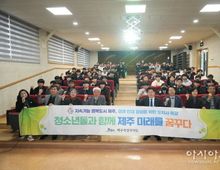[아시아통신] 오영훈 제주특별자치도지사는 26일 서귀포산업과학고등학교를 찾아 1, 2학년 학생 약 100명을 대상으로 특별강연을 열고 제주의 미래 신산업 비전을 제시했다. ‘청소년들과 함께 제주 미래를 꿈꾸다’를 주제로 진행된 이날 강연은 2024년 표선고, 한림공고, 한국국제학교(KIS)를 거쳐 올해 제주중앙고, 중문고, 남원중에 이어 일곱 번째로 마련됐다. 오 지사는 “서귀포산업과학고는 대한민국에서 태평양에 가장 가까운 고등학교”라며 “동남아시아, 태평양, 미주로 나가는 첫 번째 길목에서 미래를 준비해야 한다”고 말했다. 이어 학교급식비 인상, 청소년 버스요금 무료, 학교안전경찰관 배치 등 학생들의 실생활을 지원하는 정책을 소개하고, ‘2035 탄소중립 제주’ 목표도 설명했다. 오 지사는 “제주도가 2050년 국가 목표보다 15년 앞선 2035년 탄소중립을 선언한 이유는 기후위기가 제주부터 먼저 오기 때문”이라며 “재생에너지 발전 비율을 7기가와트 수준으로 높이고 그린수소를 연간 6만톤 생산할 계획”이라고 밝혔다. 특히 서귀포산업과학고를 에너지 분야 제주형 협약고로 육성하겠다는 방침