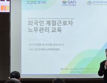 [아시아통신] 경기도의회 농정해양위원회 방성환 위원장(국민의힘, 성남5)은 31일 이천시 농업기술센터에서 열린 '2025 외국인 계절근로자 고용주 교육'에 특강 강사로 참여해, 외국인 근로자 인권 보호와 고용관계 법규 준수의 중요성을 강조했다. 이번 교육은 경기도 농업 현장에서 외국인 근로자 고용이 늘어나면서, 고용주의 인식 개선과 법적 의무 이해를 통해 안정적인 근로환경을 조성하기 위한 목적으로 마련됐다. 경기도 12개 시군을 순회하며 진행되는 이번 교육에는 약 800명의 농업 고용주가 참여하고 있으며, 이날 이천 교육에는 약 100명의 지역 농업인이 참석했다. 공인노무사로서 노동·고용 분야의 전문성을 겸비한 방 위원장은 '농어업 고용인력 지원 특별법' 개정 주요 내용, 근로기준법 및 숙식비 공제 기준, 인권침해 예방, 산업재해보상보험 적용 범위 등 농업 현장에서 반드시 숙지해야 할 실무 중심 법률 내용을 주제로 강의했다. 방 위원장은 강연에서 “외국인 근로자는 농촌의 인력난을 해결하는 핵심 파트너이자 함께 살아가는 지역사회의 구성원”이라며, “고용주는 단순한 고용주가 아니라 근로자의 안전과 인권을 지키는 공