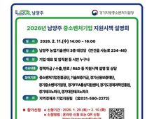 [아시아통신] 남양주시는 오는 11일 오후 2시 남양주 농업기술센터 3층 대강당에서 관내 중소기업을 대상으로‘중소벤처기업 지원시책 설명회’를 개최해 시와 유관기관의 기업지원 정책을 종합적으로 안내한다고 3일 밝혔다. 이번 설명회는 기업지원 정보를 한자리에서 제공해 정책 접근성을 높이고, 관내 기업이 다양한 지원정책을 쉽게 이해하고 지원 제도를 실질적으로 활용할 수 있도록 마련했다. 설명회에는 중소벤처기업진흥공단 등 8개 유관기관이 참여해 기업 성장에 필요한 주요 시책을 분야별로 설명할 계획이다. 주요 내용은 △금융지원 정책 △ 수출 및 판로 △연구개발 사업 등으로, 설명회와 함께 기관별 상담창구를 운영해 현장에서 맞춤형 상담도 가능하다. 시 관계자는 “이번 설명회는 기업이 꼭 알아야 할 지원정책을 한 자리에서 확인할 수 있는 기회”라며 “많은 기업인들이 참여해 다양한 지원정책을 적극 활용해주길 바란다”고 말했다. 아울러 시는 당일 ‘2026년 남양주시 중소기업 지원시책’ 종합안내서도 배부해 설명회 이후에도 참고할 수 있도록 할 계획이다. 참가 신청은 이달 10일까지 시청 누리집 공지사항