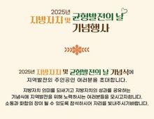 [아시아통신] 구리시의회는 오는 10월 29일에 구리시청 1층 대강당에서 ‘2025년 지방자치 및 균형발전의 날 기념식’을 개최한다. 지방자치 및 균형발전의 날은 지방자치 및 균형발전에 대한 국민의 관심을 높이고 그 성과를 공유하는 것을 목적으로 지정한 기념일로 2012년 제정 당시에는 지방자치의 날이었으나 2023년 7월 10일 지금의 이름으로 바뀌었으며, 구리시의회에서는 2023년 전국 기초의회 최초로 ‘지방자치 및 균형발전의 날 기념식’을 개최하여 올해로 3회째를 맞이했다. 올해 개최되는 지방자치 및 균형발전의 날 기념식은 구리시의회와 구리시와 지방자치의 양 수레바퀴로서 공동주최하고, 구리시주민자치협의회가 공동주관하여 지역주민의 적극적인 참여와 소통으로 진행된다. 이번 행사에는 기념식뿐 아니라 구리시 실버합창단의 아름다운 하모니로 이루어지는 사전공연과 각 동 주민자치회의 재능기부로 풍성하게 구성된 축하공연으로 그 의미를 더할 예정이다. 신동화 의장은 “올해로 세 번째를 맞는 ‘지방자치 및 균형발전의 날’ 기념식은 구리시의 실정에 맞는 자치발전의 의미를 되새기는 뜻깊은 행사”라며, “구리시의회는