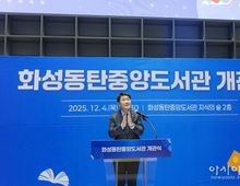 [아시아통신] 화성특례시의회(의장 배정수)는 4일, 화성동탄중앙도서관 2층 ‘지식의 숲’에서 개최된 화성동탄중앙도서관 개관행사에 참석해 시민들과 함께 축하했다. 이날 행사에는 배정수 의장을 비롯해 김영수 의회운영위원장, 김종복 문화복지위원장, 김상수·김상균·명미정·위영란·유재호·이용운·전성균·차순임·최은희 의원이 참석했고, 도서관 유관기관 관계자 및 시민 등 약 250명이 함께했다. 배정수 의장은 “지식은 힘이라는 격언처럼 도서관은 도시의 경쟁력을 키우는 가장 든든한 힘”이라며 “책을 통해 스스로 성장하는 시민, 그 시민과 함께 꿈을 키워가는 도서관이야말로 진정한 특별한 도시”라고 전했다. 한편, 이번에 문을 연 화성동탄중앙도서관은 단순한 독서 시설을 넘어, 지식·문화·창의가 교류되는 열린 플랫폼으로 조성된 것이 특징이다. ‘지식의 숲’ 콘셉트를 접목해 시민 누구나 배움과 탐구를 경험할 수 있는 공간으로 설계됐으며, 개관 기념으로 AI체험존, 지역 서점 홍보부스, 정조대왕 및 코리요 테마 전시 등 다양한 부대행사와 12월 한 달간 전시·강연·체험 프로그램이 운영된다. 이날 개관식은 어