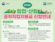 [아시아통신] 북부지방산림청은 '2026년 임업·산림 공익직접지불금' 신청을 3월 4일부터 4월 30일까지 접수한다고 밝혔다. 임업직불제는 산림의 공익적 기능을 증진하고 임업인의 소득안정을 위해 지급대상 산지에서 대추, 호두, 밤 등 임산물을 생산하거나, 산림경영계획인가를 받은 산지에서 나무를 심거나 가꾸는 육림업에 종사하는 임업인에게 직불금을 지급하는 제도이다. 지급 대상은 임산물생산업의 경우 2019년 4월 1일부터 2022년 9월 30일까지 임야 대상 농업경영체로 등록된 0.1ha이상 산지로 직전 1년 이상(연간 60일 이상) 임산물 생산업에 종사하고, 연간 임산물 판매금액이 120만 원 이상 등 일정 자격을 갖춘 임업인이어야 한다. 육림업의 경우는 산림경영계획 인가를 받고 동일 기간 내 임야 대상 농업경영체로 등록한 직전 10년간 육림 실적이 3ha 이상인 산지로, 직전 1년 이상 계속하여 육림업 지급대상 산지를 소유하고, 연간 60일 이상 육림업에 종사하는 등 일정 자격을 갖춘 임업인이어야 한다. 금년도 온라인 신청 기간은 3월 4일부터 4월 30일까지이며 '임업-in 통합포털'에서 신청할