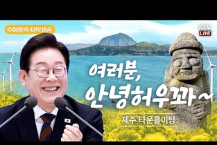 [아시아통신] 이재명 대통령은 30일 오후 제주 타운홀미팅 '제주의 마음을 듣다' 종료 후, 김혜경 여사와 함께 1박 2일 제주 일정의 마지막 일정으로 동문시장을 방문했다. 동문시장은 제주시 도심에 위치한 대표적인 전통시장으로, 대통령 부부의 방문 소식에 상인들과 방문객들은 놀라움 속에 환호와 박수로 이들을 맞이했다. 입구에 서 있던 한 외국인 관광객은 어디서 왔냐는 이 대통령의 질문에 “오스트레일리아”고 답하기도 했다. 이 대통령 부부는 셀카촬영과 악수를 이어가며 과일모찌 가게에 들러 온누리상품권으로 한라봉모찌와 딸기모찌를 구입해 즉석에서 강유정 대변인, 하정우 수석 등과 함께 시식했다. 이동 내내 이어지는 셀카요청에도 이 대통령 부부는 반갑게 응했다. 그러자 시장을 찾은 많은 도민들은 이동 중인 이 대통령 부부를 향해 "사랑해요", "와 대박", "화이팅"을 외치는 소리로 화답했다. 이 대통령은 특히 어린이들의 사진 요청에 적극적으로 답했다. "애기 있어요"라는 소리가 들리면 발걸음을 멈추고 아이들과 하이파이브를 하거나 반갑게 셀카를 찍었다. 또한 강아지를 안고 이 대통