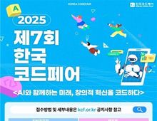 [아시아통신] 과학기술정보통신부는 광주광역시, 한국지능정보사회진흥원(원장 황종성)과 함께 청소년들의 인공지능(AI)·소프트웨어(SW) 학습 동기부여와 역량 강화를 위한 '제7회 한국코드페어' 본선 대회를 10월 17일과 10월 18일 양일간 김대중컨벤션센터(광주광역시 서구 소재)에서 개최한다. 한국코드페어는 전국의 초‧중‧고등학생들이 인공지능과 소프트웨어를 활용한 창의적인 프로젝트를 통해 문제 해결, 창의성, 소통 능력 등 미래형 인재로서 필요한 역량을 겨루는 국내 최대 규모의 경진대회로 △SW공모전 △해커톤 △온라인 SW공부방 3개의 프로그램으로 구성된다. 10월 17일 사전 행사는 김대중컨벤션센터 전시홀A, B에서 진행된다. 광주시가 주최하는 AI TECH+ 2025 행사와 연계하여 드론축구대회, AI포토부스 체험, 전시장 관람 및 스탬프 이벤트 등 다양한 프로그램을 준비했으며, 특히, 지역 청소년들도 참여 가능한 과학커뮤니케이터 궤도의 'AI시대, 콘텐츠 크리에이터의 변화'라는 특별 강연을 통해 재미있고 유익한 시간을 가질 예정이다. 10월 18일 본선 대회는 김대중컨벤션센터 전시홀C에서 개최된다. SW공