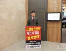 [아시아통신] 제천시의회는 9일 산업통상자원부와 한국전력공사가 추진 중인 ‘신평창~신원주 송전선로 건설사업’ 입지선정 위원회 3차회의가 열리는 현장에서 “송전선로 제천 경유 결사반대” 1인 시위를 전개했다. 이번 시위는 지난해 10월과 올해 1월 14일에 이은 세 번째 1인 시위로, 송전선로가 제천 지역을 통과함에 따른 지역 주민들의 안전 우려와 환경 파괴 문제를 알리고, 무분별한 송전선로 건설에 대한 강력한 반대 의사를 다시 한번 분명히 하고자 추진됐다. 특히 이번 시위는 봉양 옥전2리 주민 40여명이 행사장 앞인 원주 인터불고 호텔 앞 진입로에서 집회를 한 후에 이어서 진행하여 제천시민의 의지를 한층 더 확고히 했다. 박영기 의장은 “송전선로가 제천을 경유할 경우 지역 주민들의 삶의 질 저하와 환경 파괴가 우려된다”며 “주민 의견을 반영하지 않는 무분별한 송전선로 건설에 대해 끝까지 반대할 것”이라고 강조했다. 제천시의회는 앞으로도 1인 시위뿐 아니라 지역 주민들과 함께하는 반대 집회 및 다양한 활동을 통해 주민의 목소리를 대변하고 지역의 안전과 환경 보호를 위해 적극 나설 계획이다.
