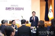 [아시아통신] 경상남도는 23일 도청 도정회의실에서 2025년도 하반기 퇴임식을 개최하고 오랜 기간 도정 발전에 헌신한 공직자들의 영예로운 퇴임을 기념했다. 이 자리에는 박완수 도지사, 퇴직공무원과 가족, 노동조합 및 동료 직원 등 120여 명이 참석해 퇴직자들의 노고를 격려하고 새로운 앞날을 응원했다. 행사는 식전 공연을 시작으로 공로패·감사패 수여, 퇴직자들의 소회와 동료 직원들의 응원을 담은 영상 시청, 후배 직원들의 축가 등으로 진행됐다. 퇴직자들은 소감을 통해 그간 묵묵히 지지해 준 가족에게 감사를 전하고, 함께 근무한 후배 공직자들에게는 경남 발전을 위해 계속 정진해 달라는 당부의 말을 건넸다. 박완수 도지사는 축사를 통해 “30년 이상 공직에 몸담으며 도민을 위해 헌신해 오신 여러분의 노고에 도민을 대표해 진심으로 감사드린다”며 “여러분이 남긴 발자취와 노력은 경남 도정의 역사로 남아 후배 공직자들에게 오래 기억될 것”이라고 말했다. 이어 “여러분의 헌신 뒤에는 늘 묵묵히 지지해 준 가족의 희생과 헌신이 있었다”며 “특히 바쁜 공직 생활 속에서도 가정을 지켜온 가족들에게도 깊은 감사의