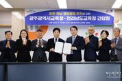[아시아통신] 광주광역시교육청과 전라남도교육청은 12일 광주·전남 행정 통합에 찬성하고 협력을 다짐하는 공동발표문을 채택했다. 이정선 교육감과 김대중 교육감은 이날 오전 광주시교육청에서 만나 최근 논의되고 있는 광주·전남 통합과 관련, “교육이 광주·전남 행정통합의 가치를 완성하는 초석이어야 한다”며 4개 항의 공동발표문에 합의했다. 광주시교육청과 전남도교육청은 발표문에서 “지역 소멸의 위기를 넘어 미래 사회를 주도하고 국가 균형 발전의 축이 될 광주·전남 행정통합‘을 적극 찬성하고 긴밀히 협력한다”고 밝혔다. 이어 행정통합 과정에서 헌법 제31조에 명시된 교육의 자주성·전문성·정치적 중립성의 가치가 훼손되지 않도록 교육자치의 보장을 위해 함께 노력하기로 했다. 또 통합 과정에서 교육 현장의 목소리를 반영하며, 지역 발전의 주역인 미래인재 양성을 위해 총력을 다할 것을 다짐했다. 두 교육청은 교육행정 통합의 청사진을 구체화하기 위해 ’광주·전남 교육행정통합추진단‘을 구성해 운영키로 했다. 이정선 교육감은 “광주·전남 행정통합과 함께 교육통합을 이루기 위해 모인 이 자리가 역
