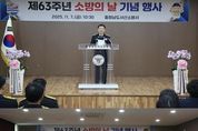 [아시아통신] 서산소방서는 7일 소방서 대회의실 및 차고에서 ‘제63주년 소방의 날’ 기념행사를 개최했다고 밝혔다. ‘소방의 날’은 매년 11월 9일로 지정된 법정 기념일로, 화재 예방과 안전의식을 높이고 국민의 생명과 재산을 보호하기 위한 취지로 제정됐다. 이날 행사에는 소방공무원, 의용소방대원, 소방행정발전위원 등 100여명이 참석해 자리를 빛냈다. 1부 행사에서는 기념사와 유공자 표창이 진행됐고 장관상·청장상·도지사상·서장상 등 총41명의 소방공무원 및 민간 유공자가 표창을 받았다. 이어진 2부에서는 케이크 절단식과 오찬을 통해 소방 가족 간의 화합과 소통의 시간을 가졌다. 최장일 서산소방서장은 “오늘의 소방이 있기까지 헌신해주신 모든 소방가족과 시민 여러분께 감사드린다”며 “앞으로도 시민이 안심할 수 있는 안전한 서산 구현을 위해 최선을 다하겠다“고 말했다.