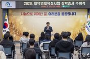 [아시아통신] 대전시의회 조원휘 의장은 27일 2026년 대전 여성리더 신년교례회에 참석해 지역 여성 지도자들과 새해 인사를 나누고 대전 발전을 위한 의지를 다졌다. 이번 행사는 지역여성협의회, 대전여성단체협의회, 대전YWCA 등 지역 여성단체 및 기관 등 150여명이 참석해 대전 여성계의 화합을 다지고 새해 활동 방향을 공유하기 위해 마련됐다. 조원휘 의장은 축사에서 "지역 곳곳에서 묵묵히 헌신해 오신 대전 여성리더 여러분께 깊은 감사의 말씀을 전한다"며 "여성의 사회참여가 확대될수록 지역사회는 더욱 풍요롭고 균형 잡힌 공동체로 성장한다"고 강조했다. 이어 "대전시의회는 올해도 양성평등 실현과 여성 역량 강화를 위한 입법·정책 지원에 최선을 다하겠다"고 밝혔다.
