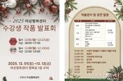 [아시아통신] 구리시 여성행복센터는 12월 1일부터 12월 12일까지 2주간 ‘2025년 수강생 작품 전시 및 발표회’를 개최한다고 밝혔다. 이번 행사는 여성행복센터 행복동 1층에서 진행되며, 한 해 동안 수강생들이 갈고닦은 실력을 선보이는 자리다. 생활 속 문화예술 참여를 확대하고 시민의 문화 향유 기회를 높이는 동시에 여성행복센터 프로그램에 관한 관심을 높이기 위해 마련됐다. 전시장에는 양재 소품, 나만의 옷 만들기, 꽃꽂이, 가죽공예, 서양화, 한국화 등 총 9개 강좌에서 제작한 약 120점의 작품이 전시된다. 또한 플루트, 바이올린, 통기타 음악 강좌 수강생들의 발표 공연도 함께 진행되어 다채로운 즐길 거리를 제공할 예정이다. 백경현 구리시장은 “추워지는 연말, 여성행복센터 수강생들의 작품발표회가 시민들의 마음을 따뜻하게 채우는 시간이 되길 바란다”라고 전했다. 한편, 구리시 여성행복센터는 2025년에 5개 교육과정, 총 72개 강좌를 실시해 2,754명이 교육을 수료했으며, 2026년 1기 수강생 모집은 12월 15일부터 28일까지 진행될 예정이다. 자세한 사항은 여성행복센터 홈페이지에서