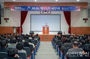 [아시아통신] 사천시는 2일 오전 10시 시청 대강당에서 박동식 사천시장을 비롯해 김제홍 부시장, 국·소장 및 전 직원이 참석한 가운데 2026년 병오년 시무식을 개최했다. 이날 시무식은 시정 홍보영상 시청, 유공 공무원 표창 수여, 신년사 순으로 진행됐으며, 공식 행사에 앞서 2025년 혁신주니어보드 최우수팀의 이지연 주무관이 ‘MZ의 시선에서, 소소하고 확실한 혁신’을 주제로 조직문화와 일하는 방식 개선에 대한 아이디어를 제시해 시무식 분위기에 변화를 더했다. 특히, ▲글로벌 우주항공복합도시 도약 ▲머무는 해양·문화 관광도시 완성 ▲민생경제 회복 및 지역상권 보호 ▲교통·정주환경 개선과 시민 안전 강화 ▲아이부터 어르신까지 행복한 복지도시 조성 등 올해 시정 운영의 5대 중점 과제를 제시했다. 유공 공무원 표창 수여식에서는 국무총리 표창(박민경, 박현아, 배현기, 김미경)을 비롯해 행정안전부장관 표창(강영욱,하동훈), 보건복지부장관 표창(유재희) 경상남도지사 표창(조인영, 이현진, 강선미, 박예슬, 최재형, 김수지) 등 총 13명의 직원이 성실한 공직 수행의 공로를 인정받아 수상의 영예를 안았다.