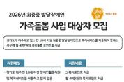 [아시아통신] 경기도가 2026년 최중증 발달장애인 가족돌봄 사업 대상자 145가구를 12월 2일까지 모집한다. 최중증 발달장애인이란 도전적 행동이 심하고 일상생활에 제약을 지닌 통합돌봄이 필요한 발달장애인이다. 경기도는 돌봄이 필요한 모든 도민들을 대상으로 누구나, 언제나, 어디나 빈틈없는 돌봄을 제공하는 360도 돌봄사업을 하고 있다. 최중증 발달장애인 가족돌봄 사업은 이 가운데 ‘어디나 돌봄’ 사업의 하나로 진행한다. 2024년 4월 처음 가족돌봄 사업을 시행한 이래 매달 210가구에 월 40만 원씩 돌봄포인트를 제공해 생필품 구입부터 여가활동 지원까지 다양한 부분에서 사용하여 장애인 당사자와 가족의 생활안정에 기여하고 있다. 2026년 최중증 발달장애인 가족돌봄 사업의 지원 대상은 경기도에서 거주하는 복지관, 직업재활서비스 등 복지서비스 미이용으로 돌봄사각지대에 놓인 만 18세 이상 발달장애인이다. 선정 시 월 40만 원 가족돌봄포인트를 1년간 지원하고 지속적인 모니터링으로 복지서비스와 대상자를 연계하는 서비스를 제공한다. 2026년 모집인원은 145명으로 전년과 다르게 모집인원을 시군별 배