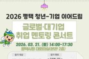 [아시아통신] 평택시는 기업 현직자들의 취업 멘토링을 통해 실질적인 취업 준비를 지원하고 인적 네트워크 형성 기회를 제공하기 위한 '평택 청년-기업 이어드림 ‘글로벌·대기업 취업 멘토링 콘서트’' 참여자를 오는 20일까지 모집한다고 밝혔다. 취업 멘토링 콘서트는 오는 3월 21일 평택시청 대회의실에서 평택 거주 또는 활동 중인 19세부터 39세까지의 구직 청년 100여 명을 대상으로 진행되며, 삼성·SK·LG·나이키·아마존·J&J·KT 등 13개 기업의 현직자들이 취업특강, 직무 토크쇼 질의응답(Q&A), 공개 모의 면접, 그룹 멘토링을 통해 실질적인 취업 정보 및 현실적인 조언과 경험을 제공할 예정이다. 참여 신청은 모집 포스터의 정보무늬(QR코드)를 통해 접수하면 된다. 기타 자세한 사항은 평택시청 누리집을 참고하거나 청년정책과로 문의하면 된다.