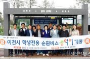 [아시아통신] 이천시는 교통취약지역 중·고등학생들의 편리한 통학을 지원하기 위해 추진해 온 ‘학생통학 순환버스 지원사업’을 10월 13일 정식 개통했다고 밝혔다. 이날 개통을 기념해 김경희 이천시장, 박명서 이천시의회 의장, 김은정 이천교육지원청 교육장을 비롯한 관계자들이 참석한 가운데 ‘통학이’ 노선에 대한 시승 행사가 있었다. 참석자들은 효양중·고에서 탑승해 이현고에서 하차하며 학생들과 담화를 나누고, 기념 촬영 및 홍보 물품 전달 시간을 가졌다. ‘통학이’를 이용한 학생이 “이전에는 환승을 해야 해서 아침마다 힘들었는데, 이제는 한 번에 학교까지 갈 수 있어서 훨씬 편하다”라며 “앞으로도 계속 이용하고 싶다”라고 소감을 전했다. 이천시 학생통학 순환버스 ‘통학이’는 통학 시간이 길고 환승 불편이 큰 지역 학생들의 통학 여건을 개선하기 위해 마련됐으며, 시는 2024년 9월부터 준비하여 세 차례에 걸친 학생 수요 조사, 교육지원청 및 운송사 협의, 타 시군 벤치마킹 등을 거쳐 면밀한 사전분석을 진행했다. 이를 통해 부발~증포·갈산~시내권역, 백사~신둔~시내권역 2개 권역(총 14개교)을 시범운행 구간으로 확