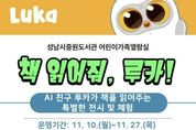 [아시아통신] 성남도시개발공사 중원도서관은 지역 어린이들에게 인공지능(AI) 기술을 활용한 새로운 독서 체험 기회를 제공하기 위해 ‘책 친구 로봇, 루카(LUKA)’를 오는 12월까지 운영한다고 21일 밝혔다. ‘루카’는 책 표지를 인식해 음성으로 내용을 읽어주는 인공지능 독서로봇으로, 유아와 어린이가 스스로 책을 읽고 들으며 독서의 즐거움을 느낄 수 있도록 돕는 AI 독서학습 보조기기다. 이번 사업은 루카를 활용한 전시와 기관 협력 프로그램을 통해 어린이들에게 친숙하고 흥미로운 독서 경험을 제공하고자 마련됐다. 먼저 중원도서관에서는 한 달간 ‘책 읽어줘! 루카’ 전시가 진행된다. 어린이·가족열람실에 루카와 전집을 함께 비치해, 어린이들이 직접 로봇을 체험하며 자연스럽게 책 읽는 즐거움과 호기심을 느낄 수 있도록 운영된다. 시민 누구나 자유롭게 참여 가능하며, AI 기술과 독서가 결합된 혁신적인 독서문화를 체험할 수 있는 특별한 기회를 제공한다. 또한, 도서관 밖에서도 아이들이 책과 만날 수 있도록 ‘책 나들이 ON 루카’ 협력 프로그램을 진행한다. 성남시 내