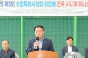 [아시아통신] 수원특례시의회는 9월 24일 만석공원 테니스장에서 열린 ‘제3회 수원특례시의회 의장배 시니어 테니스대회 개회식’ 참석했다. 이번 대회는 테니스를 사랑하는 시니어 동호인들이 한자리에 모여 기량을 겨루고 화합하는 자리로 마련됐다. 개회식에는 이재식 의장을 비롯해 오세철 예산결산특별위원장, 김동은 의원, 이재선 의원, 현경환 의원, 수원시 체육회 관계자 등이 함께해 선수들을 격려했다. 이재식 의장은 축사에서 “오늘은 테니스를 사랑하는 분들이 모두 모인 뜻깊은 날”이라며 “양일간의 대회가 부상 없이 안전하게 마무리되길 바라며, 여러분 모두의 승승장구를 힘껏 응원하겠다”고 말했다. 이어 “수원특례시의회는 시민들께서 생활체육을 통해 활기차고 건강한 일상을 누리실 수 있도록 적극 지원하겠다”고 덧붙였다.