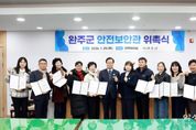 [아시아통신] 완주군이 ‘2026년 완주군 안전보안관 위촉식’을 열고 신규 안전보안관 12명에게 위촉장을 수여했다. 안전보안관은 안전신문고를 활용해 지역 내 안전 위험요인을 선제적으로 발굴·신고하고, 각종 안전문화운동과 캠페인에 참여하는 등 안전한 지역사회 조성을 위해 2018년부터 운영되고 있다. 현재 34명이 활동 중이며, 지역사회 전반의 안전의식 제고와 안전문화 확산을 위해 이번에 12명을 추가로 위촉했다. 신규 안전보안관들은 앞으로 생활 속 안전 위험요소를 발굴하고, 군민과 행정을 잇는 안전 파수꾼 역할을 수행하게 된다. 특히 주민 눈높이에서 위험요소를 발견하고 개선을 유도함으로써 현장 중심의 실질적인 안전관리 체계 구축에 기여하고 있다. 이날 위촉식에서는 안전보안관의 역할과 활동 방향을 공유하고, 안전문화 확산을 위한 결의의 시간도 함께 마련됐다. 유희태 완주군수는 신규 안전보안관들에게 위촉장을 전달하며 “완주군은 인구 10만 명을 달성하고 문화선도산단 추진 등으로 앞으로 더욱 성장할 것으로 기대된다”며 “도시가 성장할수록 안전에 대한 철저하고 신속한 대응이 중요한