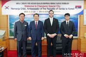 [아시아통신] 창원특례시는 27일 오전 시청 접견실에서 장금용 창원시장 권한대행이 네마냐 그르비치(Nemanja GRBIĆ) 주한 세르비아 대사를 접견하고, 양국 지방정부 간 교류·협력 방안을 논의했다고 밝혔다. 이번 접견은 창원시와 세르비아 간 상호 이해를 증진하고 향후 실질적인 교류 의제를 발굴하기 위해 주한 세르비아 대사관의 요청으로 마련된 첫 공식 만남이다. 이날 네마냐 그르비치 대사는 창원의 우수한 기술력과 산업 기반에 깊은 관심을 표명했다. 특히 '세르비아가 추진 중인 친환경 에너지 정책 속에서 창원의 기술은 매우 중요한 역할을 할 수 있을 것'이라며 적극적인 협력 의지를 전했다. 이에 장금용 창원특례시장 권한대행은 "창원은 기계, 방산, 원전 등 대한민국 제조업을 견인하는 핵심 산업도시로, 세르비아와의 협력 잠재력이 매우 크다"고 강조했다. 이어서 “이번 방문이 창원과 세르비아 간의 우호 관계를 공고히 하고 미래지향적 파트너십을 구축하는 계기가 되길 바란다"며, “앞으로도 지속적인 소통을 통해 다양한 분야에서 협력 성과가 도출될 수 있도록 노력하겠다”고 밝혔다. 또한 창원시가 추진 중인