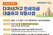 [아시아통신] 창원특례시는 세자녀 이상 다자녀가구의 전세자금 대출에 대한 이자 부담을 줄이고 안정적인 주거환경을 조성하기 위해 “창원시 다자녀가구 전세자금 대출이자 지원사업”을 시행한다고 밝혔다. 이 사업은 다자녀 가구의 주거비 부담을 완화하고 재정적 지원을 통해 출산율 제고에 기여하고자 시가 추진하는 사업으로, 3월 12일부터 27일까지 읍‧면‧동 행정복지센터에서 접수 받는다. 지원대상은 ▲기준 중위소득 180% 이하 무주택 다자녀가구로서 ▲18세 이하(2007.3.3. 이후 출생)의 자녀가 3명 이상이며 ▲금융기관으로부터 주택 전세자금 대출을 받고 ▲공고일 현재 부모·자녀 모두 창원시에 주소를 두고 있는 가구이며, 이 모든 조건을 충족 시 자격여부 확인을 거쳐 전세자금 대출잔액의 1.5% 이내 최대 100만 원까지 연 1회 지원된다. 다만, 기초생활수급 가구, 공공임대주택 거주 가구, 1촌 직계혈족 및 그 배우자와 임대차계약을 체결한 가구, 2026년 창원시 신혼부부 전세자금 대출이자 지원사업 등 유사 사업으로 이자 지원을 받은 가구는 제외되며, 자세한 사항은 창원시 홈페이지 고시 공고 게시판에서 확인할