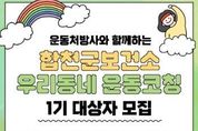 [아시아통신] 합천군은 개인별 체력과 건강 상태를 고려한 맞춤형 운동 프로그램 '우리 동네 운동코칭 : PT with U'에 참여할 1기 대상자를 모집한다고 23일 밝혔다. '우리 동네 운동코칭 : PT with U'는 1:1 맞춤형 개인운동지도(Personal Training) 서비스를 통해 단기간 체중 감량이 아닌, 요요 없이 지속 가능한 운동 습관 형성을 목표로 하며, 운동처방사가 개인에 맞춘 운동 지도 프로그램을 제공한다. 신청 자격은 만 19세 이상 만 65세 미만 합천군민 또는 합천에 직장을 둔 직장인으로 참여 희망자는 합천군 보건소 통합건강증진실로 전화 또는 방문 하여 신청할 수 있다. 프로그램은 총 5회기로 2월부터 11월까지 한 회기당 2개월씩 운영되며, 참여는 예약제로 진행되며 주중 오후 4시~6시까지, 1인당 50분씩 총 10회의 운동지도(PT)를 받는다. 또한 참가 전·후로 혈압, 당화혈색소 등 기본 검사와 체성분 측정을 무료로 받을 수 있다. 우수 참여자에게는 성과 물품도 제공된다. 이번 1기 모집 기간은 1월 26일부터 1월 30일까지 5일간이며, 선착순 15명