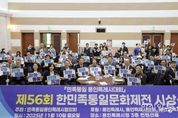 [아시아통신] 용인특례시는 10일 시청 컨벤션홀에서 민족통일 용인특례시협의회 주관으로 ‘민족통일 용인특례시대회와 제56회 한민족통일문화제전 시상식’이 열렸다고 밝혔다. 이날 행사는 한반도의 평화와 통일을 주제로 한 글짓기·웹툰·포스터·사진 공모전의 입상작을 시상하고, 유공회원에게 표창을 수여하고자 마련됐다. 민족통일 용인특례시협의회는 1981년 창립한 단체로 매년 태극기 나눔을 비롯해 지역사회 통일운동 의식 제고 등을 위한 다양한 활동을 벌이고 있다. 이날 협의회는 홍보자료 시청, 통일 관련 동영상과 남북 언어 차이에 대한 학습자료를 시청하고 간단한 통일 퀴즈대회를 거쳐 우수 작품 3개를 낭독했다. 이어진 시상식에서는 용인특례시장상 3명 등 총 36명이 수상의 영예를 안았다. 유한종 민족통일 용인특례시협의회장은 “민족의 염원인 한반도 평화통일을 위해 어려운 여건 속에서도 적극 지원해 주시는 이상일 시장님께 감사드린다”며 “대한민국 통일의 그 날이 올 때까지 협의회 회원의 뜻을 한데 모아 더욱 적극 활동하겠다”고 했다. 이상일 시장은 “대한민국이 한국전쟁의 비극을 이겨내고,