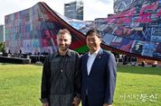 [아시아통신] 오세훈 서울시장은 26일 오후 6시 30분 열린송현 녹지광장(종로구 송현동)에서 진행된 '제5회 서울도시건축비엔날레' 개막식에 참석해 54일간 서울 도심을 장식할 글로벌 건축 축제의 시작을 알렸다. '서울비엔날레는’ 세계 도시가 함께 도시문제 해법을 고민하고 사람을 위한 건축문화를 교류하는 국내 최초 도시건축 분야 국제행사로 11월 18일까지 열린송현 녹지광장과 서울도시건축전시관 등에서 ‘매력 도시, 사람을 위한 건축’을 주제로 개최되며 이번 전시는 영국 출신 세계적 디자이너 토마스 헤더윅이 총감독을 맡았다. 이날 개막식에는 오세훈 서울시장과 토마스 헤더윅 총감독을 비롯해 마옌송, 스테판 웹스터 등 국내외 유명 건축가와 주한 외교사절, 시민 등 500여 명이 참석했다. 개막식에 앞서 오 시장은 토마스 헤더윅 총감독과 함께 서울도시건축전시관과 광화문광장을 차례로 방문해 전시 작품들을 둘러봤다. 이어 열린송현 녹지광장으로 이동해 철골과 스틸패널로 만든 대형조형물 ‘휴머나이즈 월(Humanise Wall)’과 ‘일상의 벽(Walls of Public Life)’을 차례로 관람했다. ‘휴머나