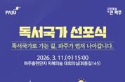 [아시아통신] 파주시는 오는 11일 15시, 파주출판도시 지혜의숲 대회의실에서 ‘파주시 독서국가 선포식’을 개최하고 책 읽는 도시를 넘어 ‘독서국가’로 나아가기 위한 힘찬 출발을 알린다. 이번 선포식은 지난 1월 국회의원관에서 열린 ‘독서국가 선포식 및 독서국가 추진위원회 출범식’의 취지에 발맞춰, 인공지능(AI) 시대에 대응하는 독서교육의 국가적 전환 움직임에 동참하고, 책과 도서관의 도시이자 출판산업의 중심지라는 도시의 강점을 바탕으로 시민과 함께하는 독서 생태계를 확대하기 위해 마련됐다. 이날 행사에는 도서관·교육·출판·서점 관계자와 시민 등 200여 명이 참석할 예정이며, ▲독서국가 선언문 발표 ▲대형 붓글씨 시연 ▲문단계의 아이돌이자 국회 독서국가 추진위원회 공동위원장인 박준 작가의 ‘읽는 하루’강연을 펼칠 예정이다. 파주시는 이번 선포식을 계기로 독서문화 확산 정책을 더욱 체계화해 시민 일상 속에 책 읽는 문화를 더욱 깊이 뿌리내리게 할 계획이다. 이번 행사는 시민 누구나 참여할 수 있으며, 참가 신청은 파주시도서관 누리집 또는 홍보물 내 정보 무늬(QR코드)를 이용하면 되고, 문의사항은