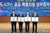 [아시아통신] 당진시는 13일 충남도청 대회의실에서 충청남도, 미래앤서해에너지와 함께 도시가스 공급 특별지원 업무협약(MOU)을 체결했다고 밝혔다. 협약식에는 오성환 당진시장을 비롯해 김태흠 충남도지사, 이완섭 서산시장, 송민섭 미래엔서해에너지 대표가 참석했다. 이번 협약은 도시가스 공급 취약지역 주민의 에너지 복지 실현과 지역 간 에너지 격차 해소를 위해 행정, 기업과 지역사회가 함께 만들어낸 협력의 결과로, 협약에 따라 ▲정미·채운 지역 도시가스 배관 설치를 위한 특별지원금 확보 ▲2027년까지 배관 공사 완료 등이 추진될 예정이다. 정미면과 채운동에는 각각 2.89km, 2.8km의 도시가스 배관이 설치돼 정미면 126세대, 채운동 82세대가 혜택을 보게 된다. 현재 당진시 도시가스 보급률은 93%로 도내에서도 높은 수준이지만, 정미면은 보급이 전혀 없어 에너지 복지의 실질적 사각지대로 꼽혔다. 채운1통 역시 인근 아파트까지는 예전부터 도시가스가 공급됐으나 나머지 지역은 경제성 문제로 제외돼 주민들의 상실감과 소외감이 컸다. 시는 이번 협약으로 주민들의 오랜 숙원이 해