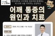 [아시아통신] 구리시는 오는 10월 2일, 시민들의 근골격계 질환 예방과 건강관리 역량 강화를 위해 '어깨 통증의 원인과 치료'를 주제로 한양대학교 구리병원 마취통증의학과 박형준 교수와 함께하는 ‘나를 지켜주는 건강특강’을 구리시 공식 유튜브 채널(구리비전)을 통해 송출한다고 밝혔다. 현대인들은 장시간의 컴퓨터 사용, 스마트폰 과다 이용, 운동 부족 등으로 인해 어깨 통증을 호소하는 경우가 증가하고 있다. 어깨 질환은 흔히 단순 근육통으로 오인해 치료 시기를 놓치기 쉬우나, 방치하면 만성 통증이나 일상생활 불편으로 이어질 수 있어 조기 발견과 올바른 관리가 무엇보다 중요하다. 이번 특강에서는 △어깨 통증의 주요 원인 △잘못된 생활 습관과 예방법 △비수술적·수술적 치료 방법 △일상에서 실천할 수 있는 스트레칭 및 운동법 등을 알기 쉽게 전달할 예정이다. 시민들은 10월 2일부터 15일까지 구리비전 채널에서 강의를 시청한 뒤, 궁금한 사항을 댓글로 남길 수 있다. 이 가운데 우수 질문 3개를 선정해 박형준 교수가 직접 답변하고, 추가로 17명을 무작위로 추첨해 총 20명에게 모바일 쿠폰을 증정한다. 백