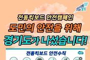 [아시아통신] 경기도는 11월 한 달간 경기도의회, 경기도교육청, 경기 남ㆍ북부경찰청, 경기도교통연수원, 한국도로교통공단, 시군 등 유관기관과 함께 전동킥보드 안전문화 합동캠페인을 추진한다. 도는 전동킥보드 주요 사고 다발지역 및 유동인구 밀집 지역을 중심으로 유관기관 및 시민단체와 연계해 전동킥보드 필수 안전수칙이 담긴 홍보물을 배부하고 경찰과 협력해 현장 계도 활동도 병행한다. 시군별 전광판, 현수막 등 지역 홍보 매체를 적극 활용해 전동킥보드 안전수칙 홍보도 적극 확대할 계획이다. 특히 전동킥보드 사고 발생의 주요 원인인 면허 자격, 이용 연령, 안전모 착용, 동승 금지 의무 등을 집중적으로 안내하고, 교육청과 협력해 청소년 대상 교육도 강화할 방침이다. 윤태완 경기도 광역교통정책과장은 “이번 안전캠페인은 전동킥보드 안전이용 문화가 안착되는 계기가 될 것”이라며 “도에서는 캠페인 기간이 끝나더라도, 경찰청·교육청 등 유관기관과 지속 협력해 전동킥보드 안전사고 예방에 총력을 다할 계획이다”고 말했다. 현재 경기도 내 운영 중인 공유 전동킥보드는 6만 7,866대로 31개 시군 전역에